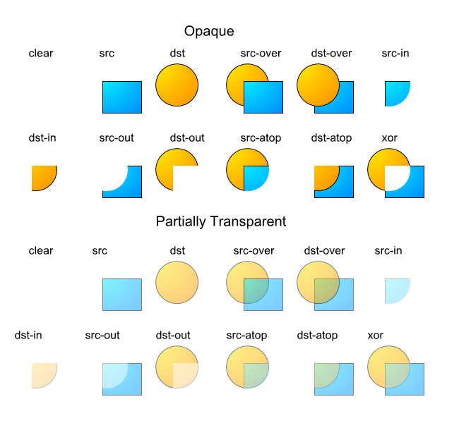 Composition is performed pixel by pixel in the style of the Plan 9 graphics
